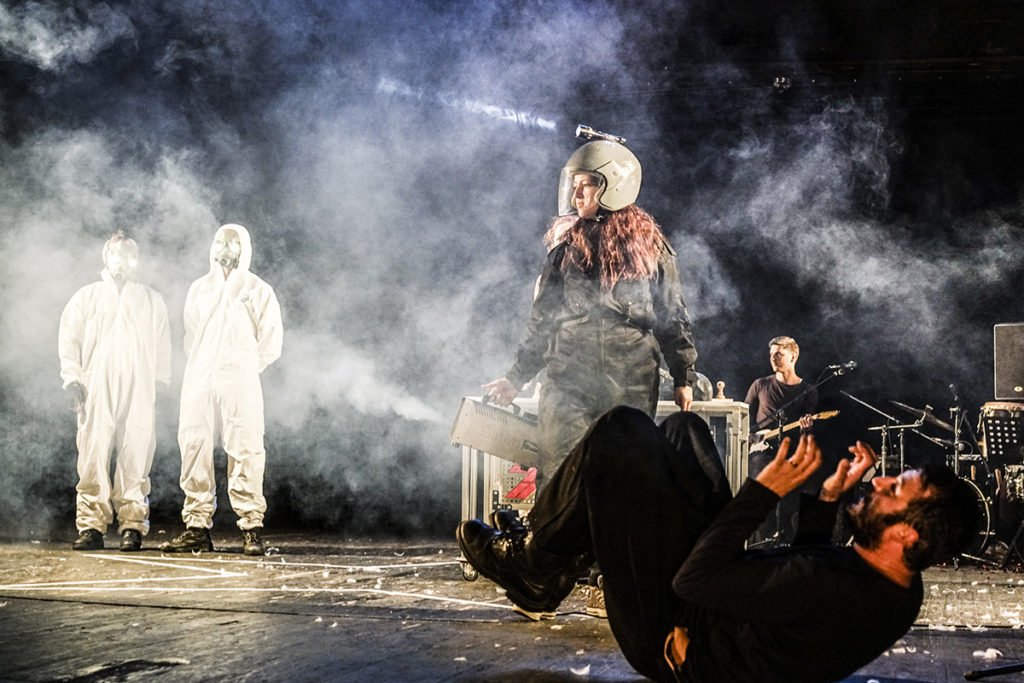 Gli attori perfettamente a loro agio in una scena folle (davvero “postdrammatica”) della Rrustemi dove il ritmo viene dettato dalla musica, dal canto, dallo stravolgimento dei generi teatrali (un po’ Broadway, un po’ circo) incarnano con forza, al di là della finzione teatrale, gli ideali di una generazione che sta cercando di uscire da cliché culturali imposti dall’esterno, e in generale, dall’immagine che l’Europa promuove del Kosovo. Quindi la prima ribellione è proprio quella dell’arte.