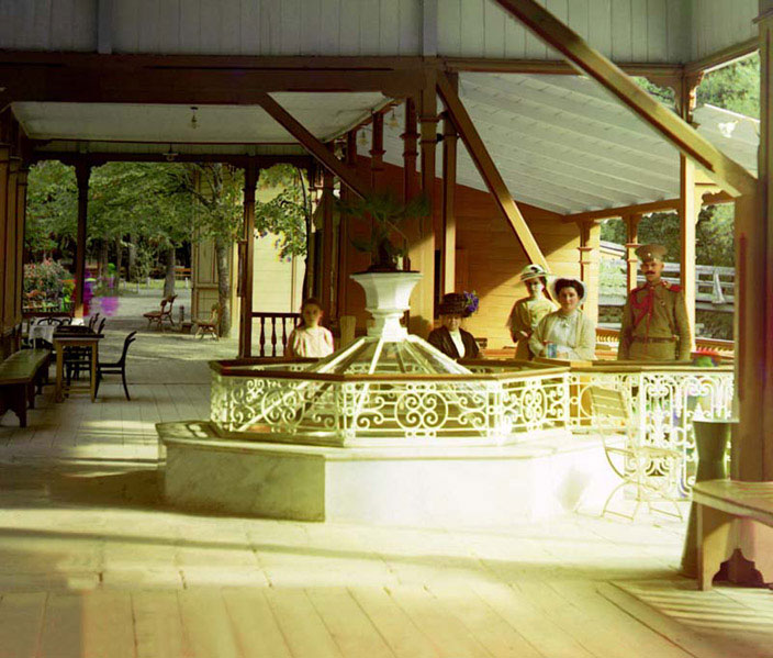 La foto è del 1915. Nota per le sue acque minerali fin dall’Ottocento, la cittadina era meta di un turismo non solo locale, specie perché nella vicina località di Likani, la famiglia imperiale aveva acquistato una residenza estiva. Il business delle acque minerali imbottigliate rese il marchio ‘Borjomi’ famoso in tutta l’ex Unione Sovietica. E tuttora le acque minerali sono una voce importante dell’export georgiano. La città si è anche candidata nel 2006 per ospitare i Giochi olimpici invernali 2014, assegnati poi alla non lontana città russa di Sochi (Library of Congress, Prokudin-Gorskii Collection )