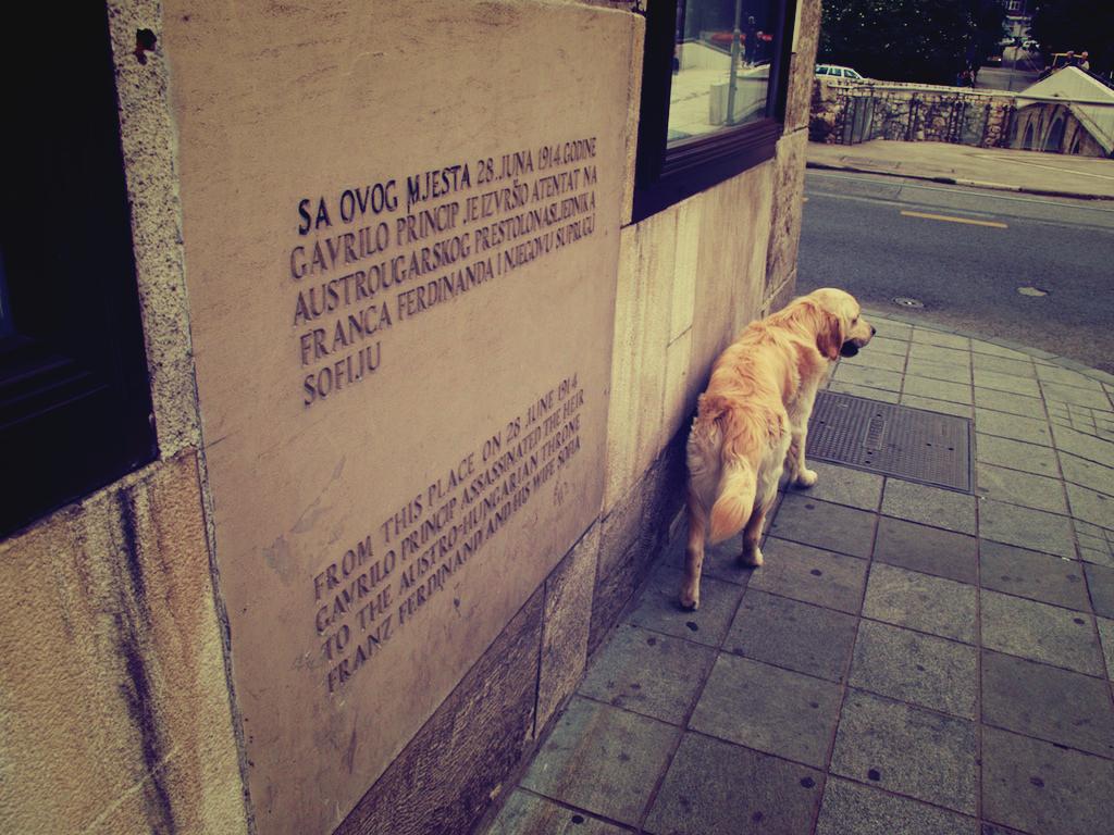 Targa commemorativa sul luogo dell'assassinio di Francesco Ferdinando a Sarajevo (flickr/Mark Hamilton)