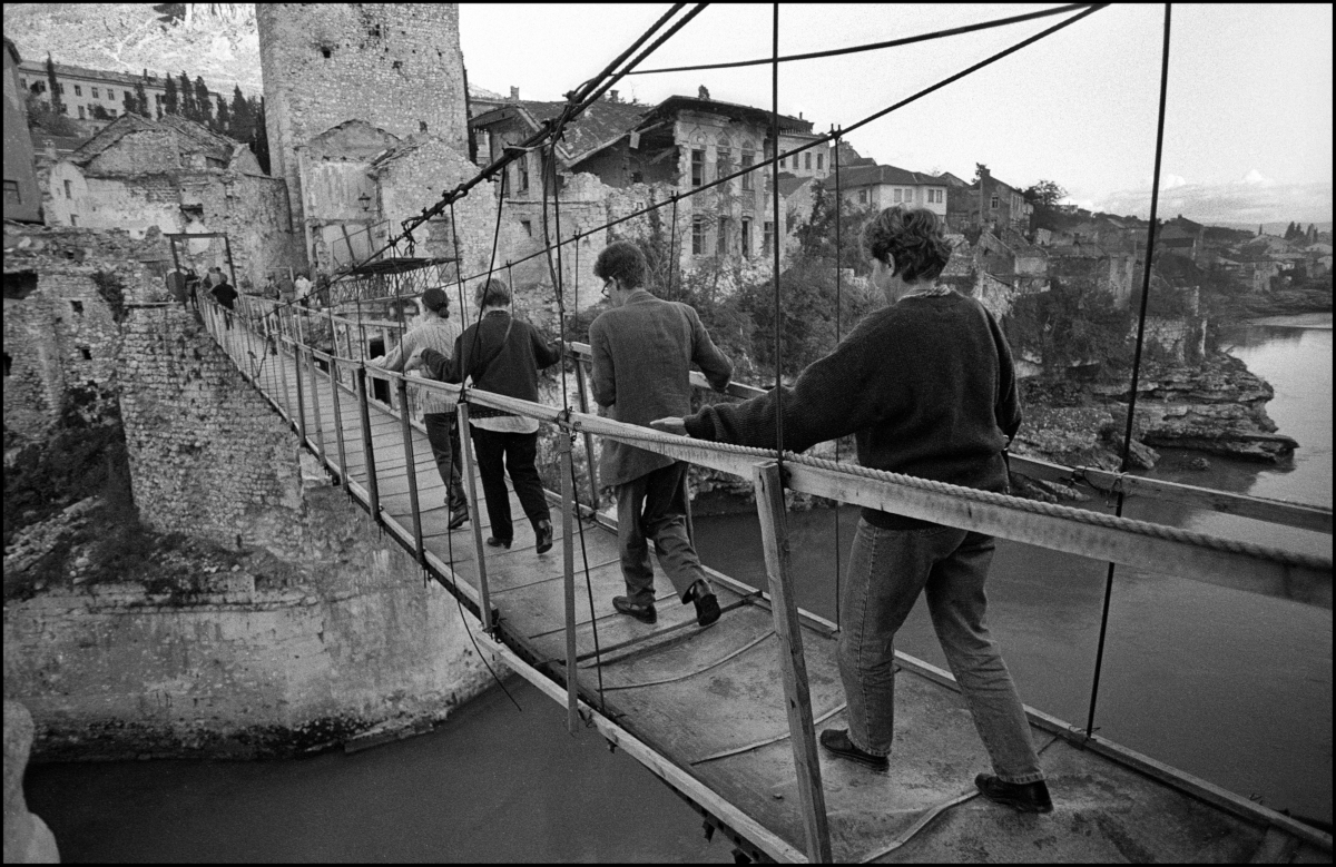 Mostar 1994, passerella al posto del Vecchio ponte abbattuto (© foto Mario Boccia)