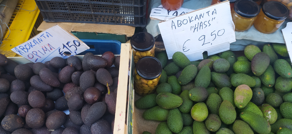 Il giorno dopo mi metto in cammino alla scoperta di quella che i veneziani chiamavano La Canea, anche se sul primo vero isolario di Benedetto Bordone, pubblicato nel 1547, leggo Cania al centro del golfo protetto a ovest da Capo Spati e Capo Meleccha, con al centro la piccola isola di Elturluru. Geografie incerte e fantasiose diciamo noi oggi, comunque La Canea era e rimane il primo grande porto di Creta, provenendo da nordovest. Scopro subito che due luoghi centrali sono purtroppo chiusi: il museo archeologico e il grande mercato, il primo perchĆ© verrĆ trasferito in una nuova sede il secondo per restauro. Se dei tesori museali mi devo accontentare solo di alcune immagini e informazioni trovate in rete, del mercato ritrovo casualmente tutte le colorate e profumate merci, tutte le voci e le sonoritĆ commerciali. PerchĆ© seguendo il perimetro esterno delle mura occidentali finisco nelle vie che ospitano decine di bancarelle di frutta, verdura, formaggi e carni. Anche qui il mercato alimentare ĆØ l’occasione per entrare nel vivo della quotidianitĆ , per annusare e assaggiare un mondo contadino che a Creta ĆØ ancora vivissimo e produttivo. Se pomodori, cetrioli, patate e insalate sono ormai cosmopoliti, erbe selvatiche e aromatiche sono ciò che di più odoroso, saporito, originale offrono le rive mediterranee. Finocchietto e aglio fresco, timo e origano secchi, asparagi, fave, piselli e carciofi, olive d’ogni tipo; dalle grandi, nere e famose kalamata alle piccole, verdi e semisconosciute tsakistes, buonissime entrambe e a 6,50 euro al chilo. Ma scopro anche che a Creta c’ĆØ una importante produzione di abokanta, cioĆØ piccoli avocado nella varietĆ verde hass e in quella scura opima, rispettivamente a 2,50 e 1,50 euro al chilo. Non mancano formaggi di vari tipi, colori, dimensioni e profumi, carni di maiale, manzo e agnello. Ci sono un paio di venditori ambulanti di polli arrosto che giĆ alle 9 girano sugli spiedi e uno specializzato solo in conigli. Scuoiati, con l’eccezione delle zampe, sacrificati a oscure divinitĆ dionisiache.