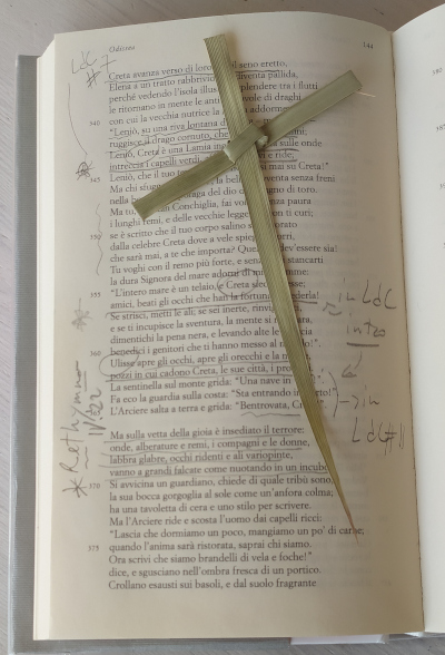 Arrivo a Réthymno la mattina della Domenica delle Palme ortodossa, che coincide con la Pasqua cattolica. Cielo grigio, Libeccio teso, che qui sulla costa settentrionale di Creta viene da terra. Qualche goccia che sembra più fatta di sabbia rossa del deserto libico che di acqua del cielo cretese. Pochissima gente in giro, solo davanti alle chiese ci sono persone di tutte le età che entrano ed escono. Chiese vive, con una loro voce che si fa canto ortodosso e attrae irresistibilmente anche il pellegrino laico. Le si sente da lontano, poi seguendo il richiamo le si vede e ancor più da vicino si annusa l’odore. Così l’esperienza spirituale si fa corporea, con ogni senso per il fedele che bacia le icone e celebra l’eucarestia. Pane fermentato e vino rosso diluito con acqua, per gli ortodossi. Una necessaria materialità che in questa domenica di festa si sostanzia anche nel lavoro di alcune donne. All’ingresso di ogni chiesa, con mani abili, confezionano piccole croci e stelle, con sottili strisce vegetali che sono poi mezze foglie di palma, non ancora dischiuse. Ce ne sono ceste piene che i fedeli prendono, fanno benedire e conservano per tutto l’anno nei piccoli altari domestici, ai crocicchi delle strade o appese agli specchietti retrovisori delle auto.