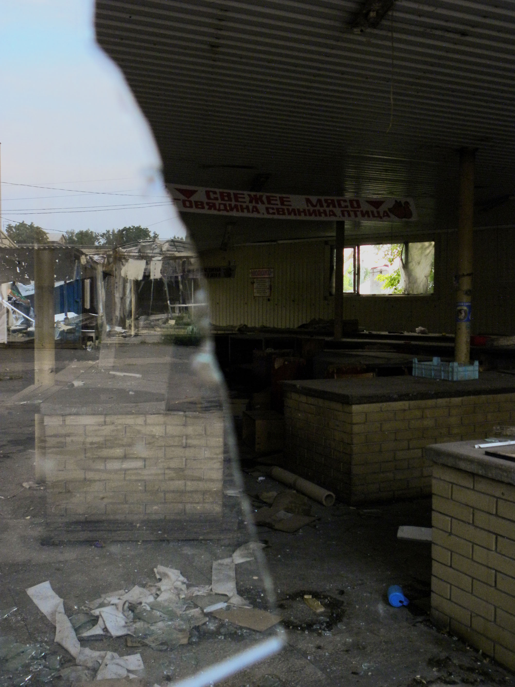 Su invito di Alexey, il guardiano della moschea, documentiamo i danneggiamenti provocati da mortai e granate, che mentre fotografiamo continuano ad esplodere a qualche centinaio di metri. Trovandosi nel bel mezzo dei combattimenti, la comunità islamica della città è stata costretta ad interrompere nella moschea ogni attività religiosa. Camminando ascoltiamo Alexey: è cresciuto a Donetsk, ma la sua famiglia viene da L’vov, città a cui si sente legato nonostante, dice, sia la roccaforte del banderismo. Raccontandocelo, con il sangue agli occhi impreca contro i nazisti di Pravy Sektor.