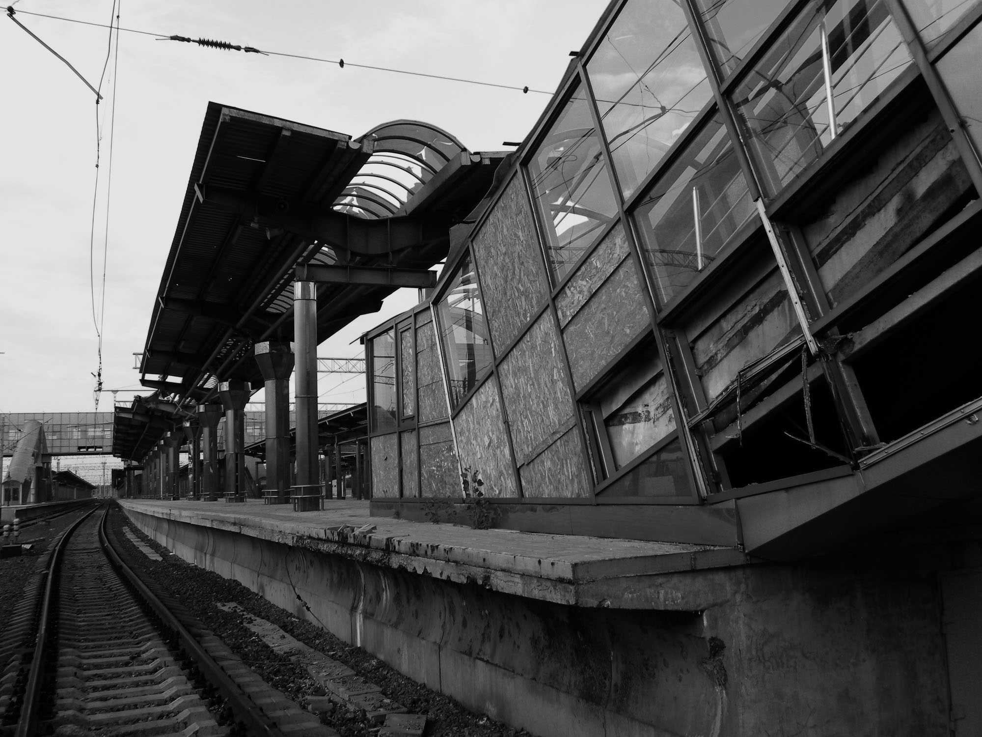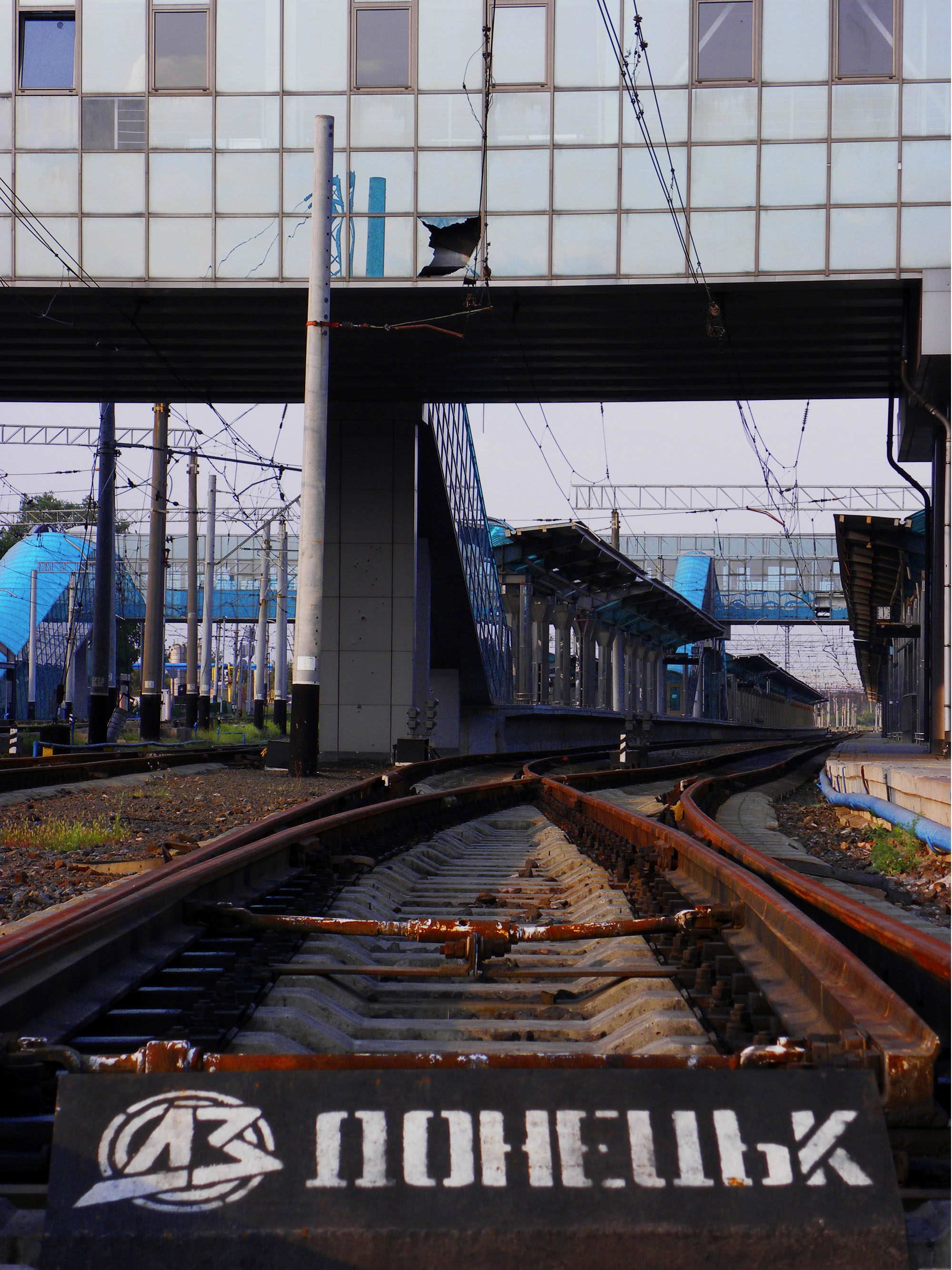 In centro della città è ordinatissimo. Strade pulite, prati rigogliosi, aiuole in fiore: quasi non si direbbe che ci sia la guerra, se non fosse per i continui boati che arrivano da una manciata di chilometri dalla città. Nella periferia nord, la situazione è ben diversa: con un autobus di linea raggiungiamo rapidamente la stazione ferroviaria, nel quartiere Kyvskiy, prossimo alla zona dell’aeroporto. La stazione è stata completamente ristrutturata in occasione dei campionati europei di calcio del 2012, ma i bombardamenti dell’esercito ucraino l’hanno seriamente danneggiata in più parti. Appena scesi, ad accoglierci, in lontananza, ci sono raffiche di mitragliatrice ed una serie di esplosioni.