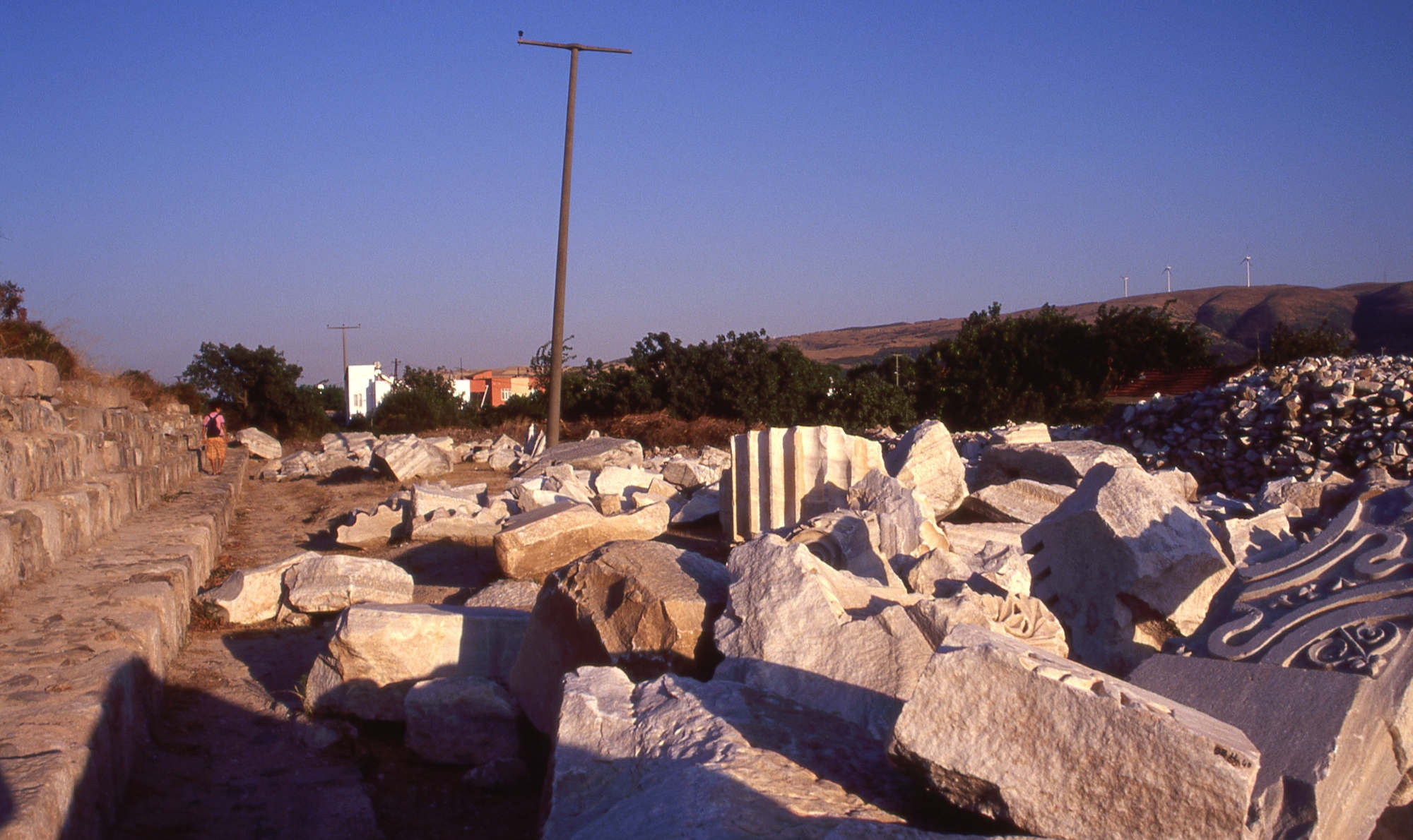 Oggi non è che un esaltante ammasso di rovine in marmo: ma così ben lavorate e scolpite, da giustificare senz’altro l’inserimento di quello che fu il tempio di Zeus Olimpio a Cizico nel celebre catalogo dell’antichità. Il diffuso fulgore lapideo di centinaia di virtuosismi artistici esposti nudi al sole risalta bruscamente sulla campagna verde pallido e riarsa di mezza estate, in una semiperiferia di casette sparse, di modesti minareti. Un grande basamento in pietra sopraelevato segnala le dimensioni del sacro edificio; a terra, giacciono rocchi di colonne (due persone non le cingerebbero con le braccia), eterei capitelli, smilzi acroteri, volute mollemente attorcigliate; da una parte, un’infinità di gocciolatoi, di tegole, di travi, di triglifi, tutti in marmo, sono accatastati in un ordinato tumulo. Il tramonto già li arrossa, quando vi arrivo. Più vicino a me, incrocio lo sguardo con una protome leonina rimasta capovolta per secoli a fauci spalancate, come sbigottita per tutte quelle meraviglie crollate al suolo.