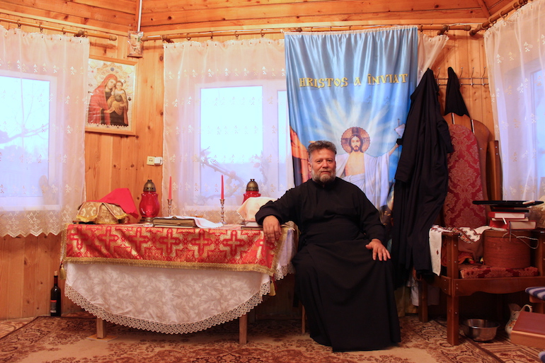 Padre Florin è originario di Târgu Neamț in Romania. È il primo prete rumeno ad essersi trasferito in Moldavia dopo l’indipendenza nel 1991. Inviatovi dalla Chiesa ortodossa rumena in missione per “servire i rumeni sull’altra riva del Prout”, fiume che separa Romania e Moldavia. Si è stabilito a Dereneu. La chiesa locale era abbandonata, l’ha ristrutturata ed a fianco ha costruito la propria casa.