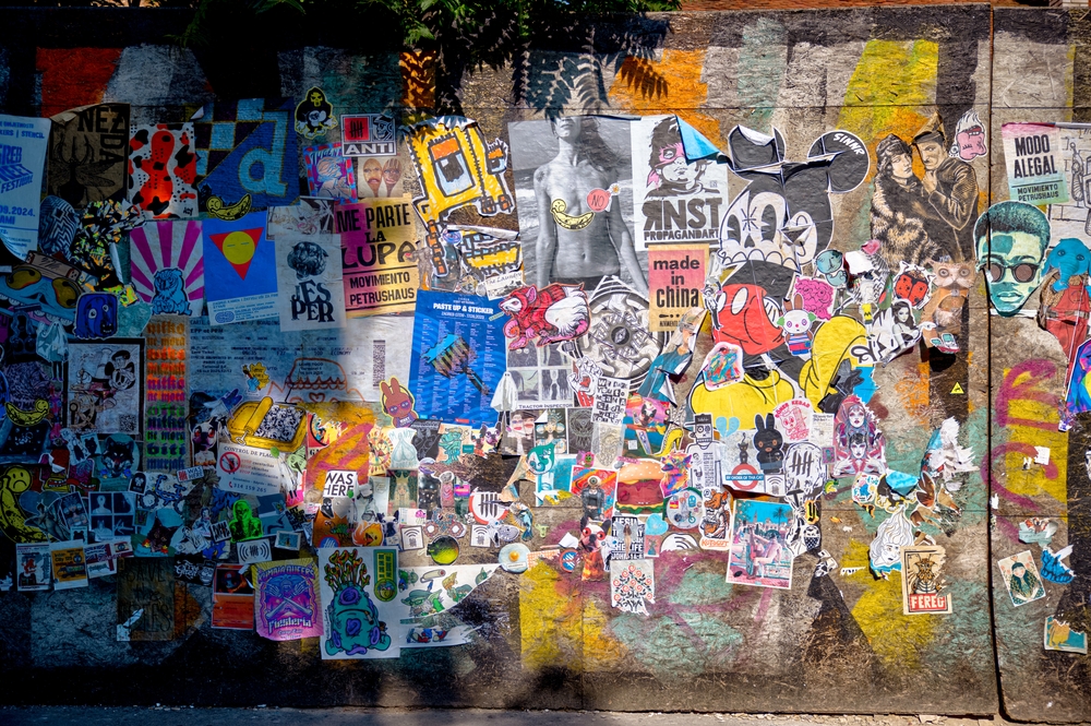 Zagabria, Croazia – Muro con manifesti e street art
