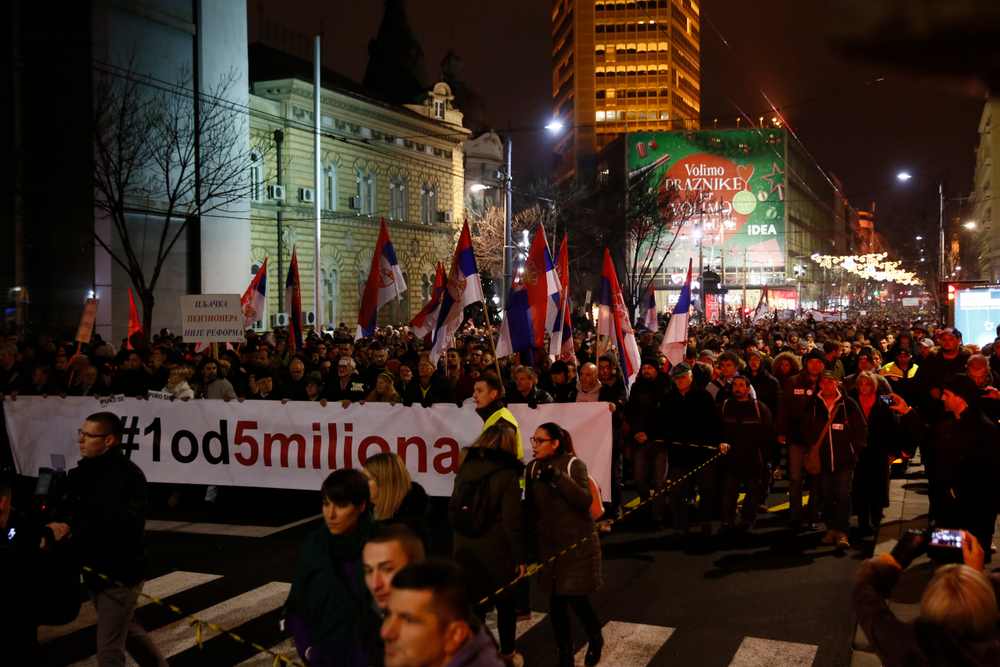 Protestiamo contro la crescente povertà dei cittadini e contro l’arricchimento vergognoso delle persone vicine al governo. Protestiamo per le leggi abolite, per il progetto Belgrado sull’acqua e il caso Savamala, per i criminali con dei passamontagna in testa che di notte distruggono quello che vogliono, per i criminali che decidono delle nostre vite, per le luminarie natalizie a Belgrado che brillano da settembre ad aprile, mentre i soldi spesi per acquistarle potrebbero essere usati per risolvere problemi sempre più numerosi.