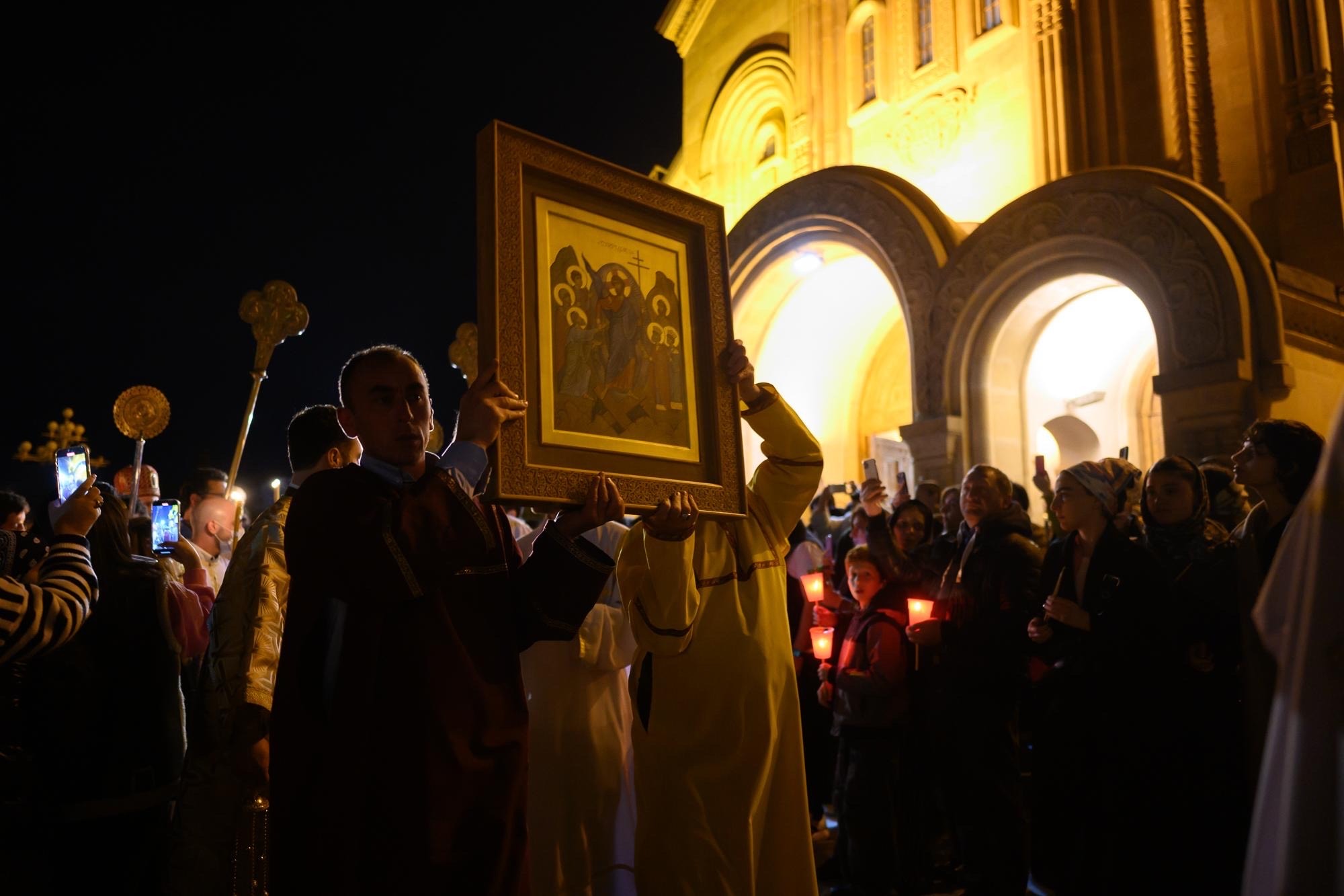 Centinaia di persone si sono radunate presso la cattedrale Sameba di Tbilisi, tra cui alcuni armeni locali. La loro vicina chiesa, nel quartiere di Avlabari, è rimasta chiusa fino al mattino.