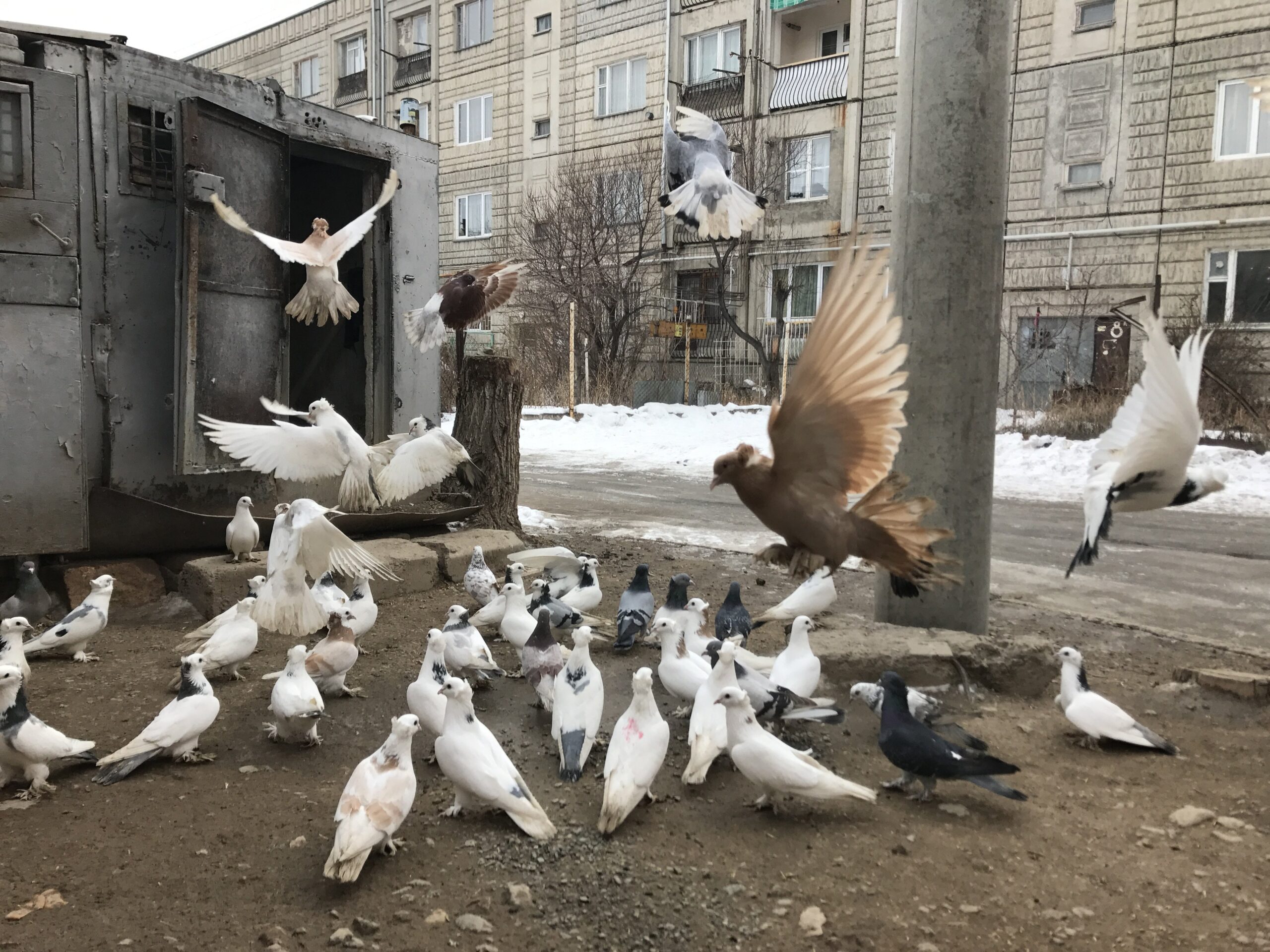 “Noi veniamo a sapere notizie che riguardano piccioni in qualsiasi angolo del mondo, e poi ne discutiamo! Cinque anni fa abbiamo saputo del tizio cinese che si è comperato un piccione pagandolo centinaia di migliaia di dollari. Ancora sogno di essere messo in contatto con lui, di portarlo a far visita ai miei parenti, di chiedergli che razza di piccione fosse per valere tutti quei soldi e che tipo di business poi lui ci riuscisse a fare. A noi armeni piace ascoltare chi viene dall’estero, se lui mi parlasse io guadagnerei di prestigio e mi libererei di migliaia di preoccupazioni”, racconta David Shirvanyan, 40 anni, che ormai alleva piccioni da 30. Da ragazzino ricevette il suo primo piccione in dono da un parente e da allora è perdutamente innamorato di questi uccelli.