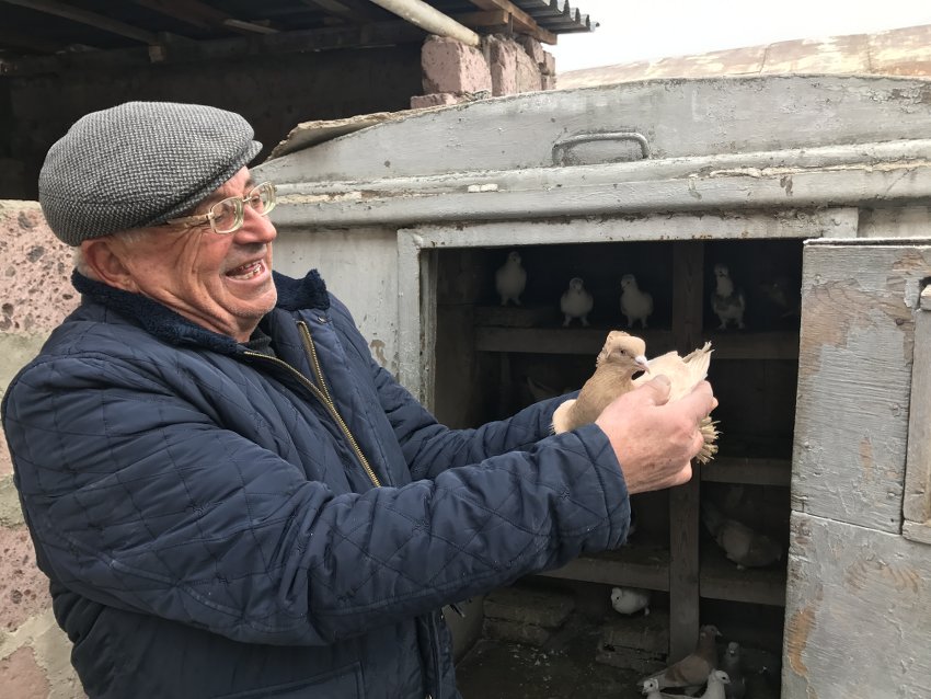 Uno dei più anziani ghushbase di Gyumri è Ashot Metsoyan, 67 anni. Da trent’anni, 3 volte al giorno, va dai suoi uccelli per dare loro da mangiare, cambiare l’acqua e ripulire i nidi.