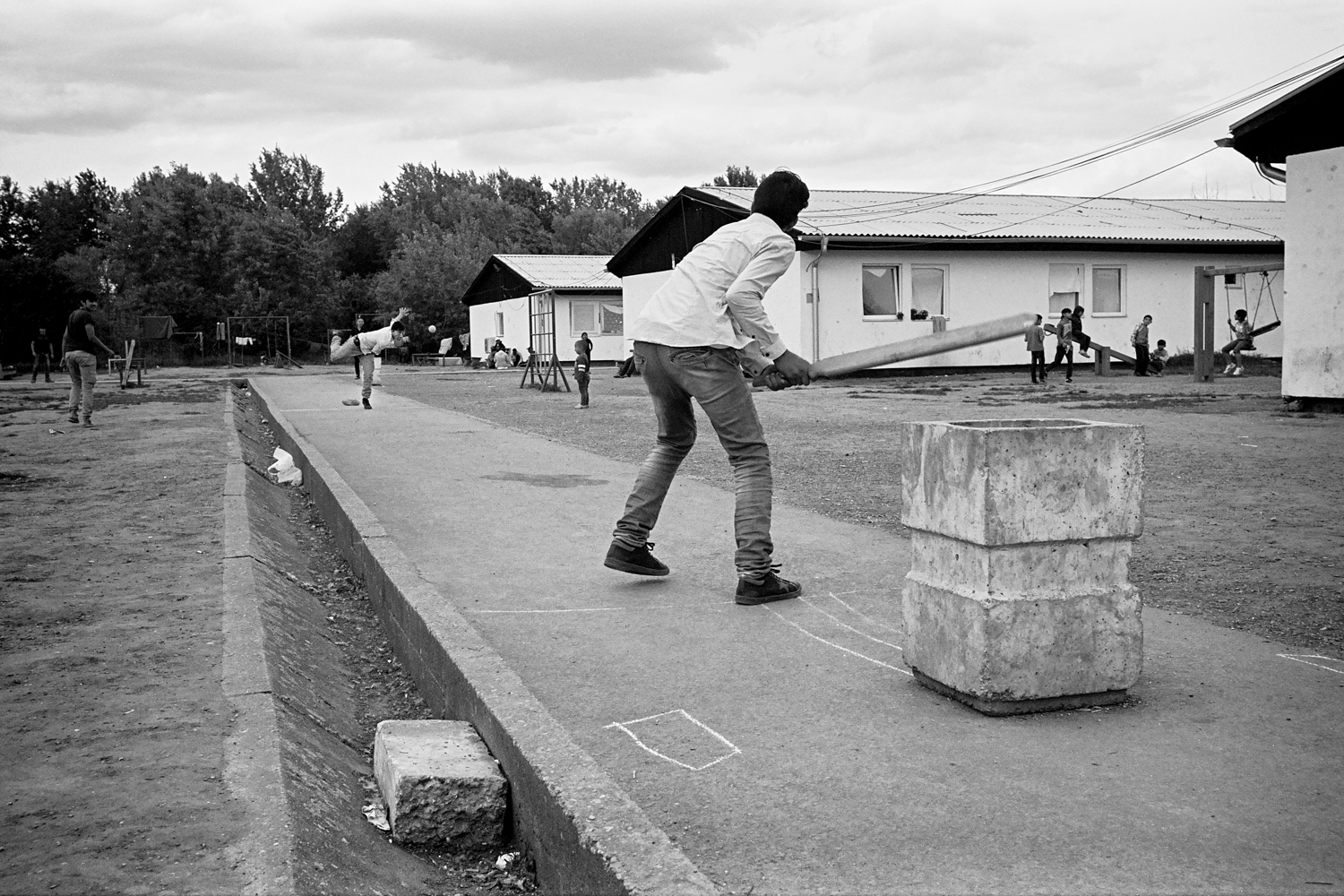 Alcuni ragazzi giocano a cricket nel campo rifugiati di Krnjača, aprile 2017 – foto di Marco Carmignan