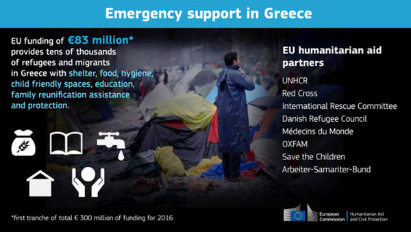 Dal 20 Marzo 2016, con la chiusura della rotta a seguito del fragile e discusso trattato tra UE e Turchia, i migranti intrappolati in Grecia sono 57.115  ospitati in 55 campi (fonte UNHCR), la maggioranza dei quali dislocati nei campi ufficiali gestiti dal governo greco attraverso il controllo dei militari.