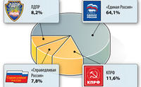 Il partito Russia Unita, con il presidente Vladimir Putin capolista, ha vinto le legislative del del 2 dicembre. La Commissione elettorale centrale ha detto che con quasi tutti i voti scrutinati, Russia Unita ha ottenuto il 64,1% delle preferenze, circa sei volte il concorrente più vicino, il Partito comunista (11,6%) . Gli altri partiti che hanno superato la soglia di sbarramento del 7 percento sono i nazionalisti del Partito Liberal-democratico (8,2%) e Russia Giusta(8%), il movimento alleato con Putin.