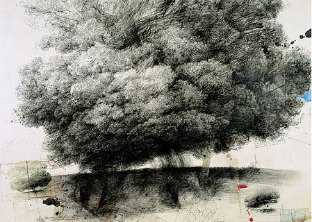 Alberi. La scurità e le trasparenze del colore, del disegno, e ancor più del segno inciso, trovano nel mondo vegetale, in particolare nelle chiome dei grandi alberi, una miniera senza fondo.