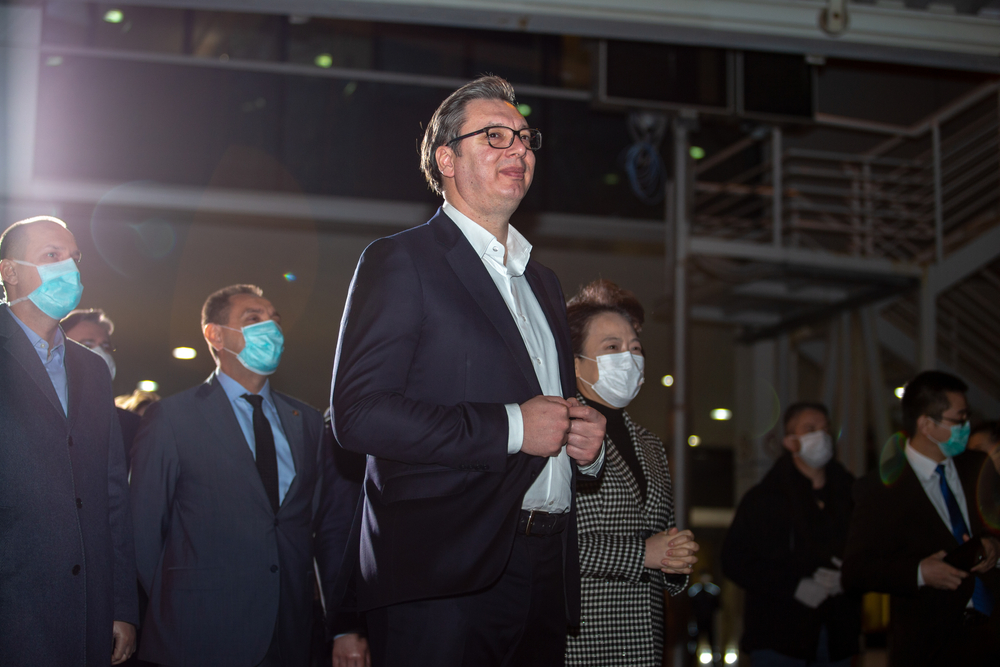 Aleksandar Vučić accoglie l'arrivo di aiuti dalla Cina, 21 marzo 2020 (foto © SkyStudioRS/Shutterstock)