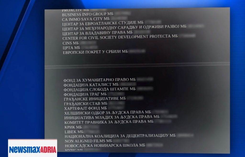 Nell’elenco compaiono il Balkan Investigative Reporting Network (BIRN ), il Centro per il giornalismo investigativo della Serbia (CINS ), la Rete di investigazione su crimini e corruzione (KRIK ), la Scuola di giornalismo di Novi Sad, le due principali associazioni dei giornalisti serbi (UNS e NUNS) e alcune organizzazioni per la difesa dei diritti umani, tra cui Iniziative civiche (Građ anske Inicijative ), il Comitato di giuristi per i diritti umani (YUCOM ), il Centro per la politica di sicurezza di Belgrado, il Comitato di Helsinki per i diritti umani e il Centro per il diritto umanitario.