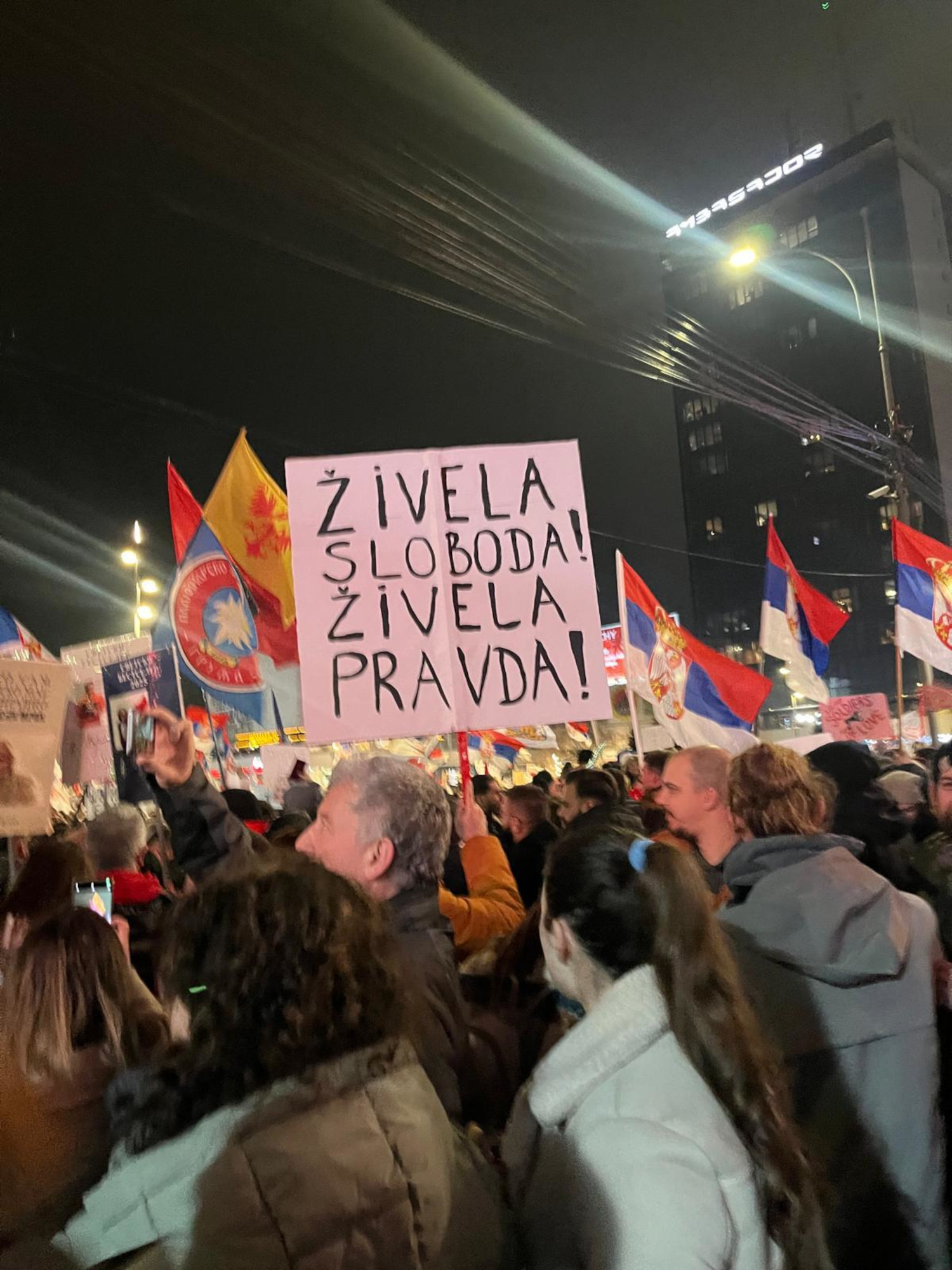 Le strade delle nostre città, da Niš a Novi Sad, da Belgrado a Kragujevac, sono testimoni della forza dell’unità del popolo. Questa solidarietà, finora sconosciuta ad un sistema basato sulla divisione, diventa la nostra promessa e la nostra forza, che difenderemo e faremo crescere. Trasformando le singole voci in forze per il cambiamento, abbiamo dimostrato che la Serbia non è un insieme di interessi contrapposti, ma una comunità di cittadini che condivide la stessa visione del futuro.
