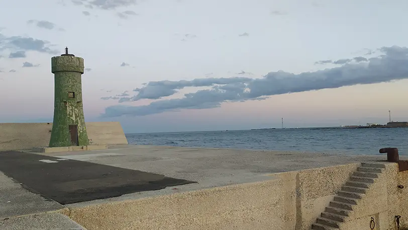 Brindisi! mi ripeto oggi aprendomi un peroncino ghiacciato, seduto sul basamento del fanale verde, in testa al molo Punta Riso. Sono tornato qui, ancora una volta per vedere questa straordinaria città dal mare, perché da qui, si vede meglio nel suo insieme, con le sue bellezze e nefandezze, dopo aver camminato per più di due chilometri verso il largo, in direzione est.