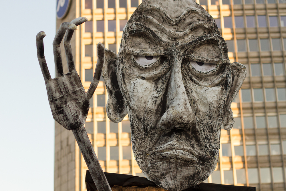 Una statua raffigurante Janez Janša durante le proteste antigovernative a Lubiana nel 2020 © B7 Photography/Shutterstock