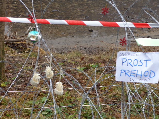 L’avversione contro il filo spinato fuoriesce dalla valle e arriva fino a Lubiana, portando gente come Barbara alla protesta: “Io in genere non scendo in piazza, ma sono amareggiata dal perverso cervello che ha inventato questo obbrobrio che non serve a nulla se non a ostacolare coloro che sono abituati a fare il bagno nel fiume. Il fiume è nostro!”. E come in molti casi un microcaso getta luce su numerosi altri problemi che dal livello locale si spostano a quello nazionale. Come ricorda Luka Počivalšek di Radio Študent di Lubiana dietro all’erezione del confine si nasconde una mancanza di trasparenza: “non sappiamo con esattezza quanti soldi siano stati stanziati per la costruzione della barriera, né da dove viene il filo spinato, anche se si possono vedere dei piccoli simboli che indicano il paese di provenienza”.