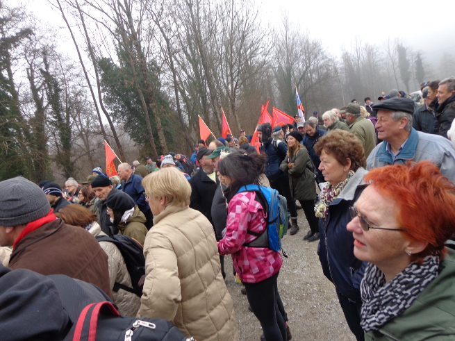 Le questioni ambientali si sono fuse con rivendicazioni più ampie da parte di un composito gruppo di partecipanti, alcuni dei quali hanno preso la parola all’inizio della manifestazione. Tutti hanno rimarcato come il fiume, ora segnato dal filo spinato, abbia sempre unito più che diviso gli abitanti delle due sponde, sloveni e croati. Ma sono volati anche slogan, come “Morte al fascismo, libertà al popolo”, con richiami nostalgici al tempo della Jugoslavia seguiti da nutriti applausi e che si coniugavano con le numerose bandiere rosse di piccoli gruppi di ispirazione socialista. A ritornare è stato anche il paragone con un altro filo spinato, quello che durante la seconda guerra mondiale circondava la città di Lubiana e i campi di concentramento. “Anche oggi abbiamo gli stessi fascisti, deve cadere il filo e deve cadere anche questo governo” urla nel microfono Ines, trentenne di Adrija. Ma subito dopo è Goran, un quarantenne di Lubiana con origini della valle della Kolpa, a invitare i presenti a non cadere negli slogan, come i politici, ma a prendere le forbici in mano ed andare da soli a tagliare il filo.