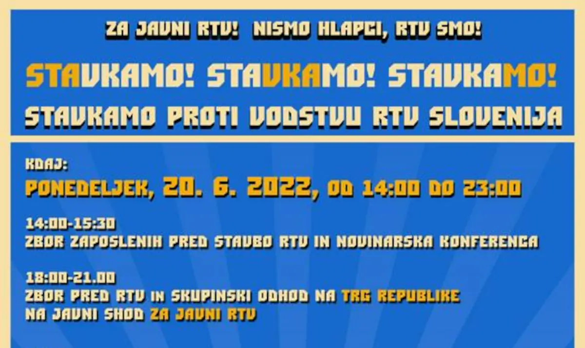 La Federazione Nazionale Stampa Italiana , la Federazione Europea dei Giornalisti e Assostampa Friuli Venezia Giulia sono al fianco dei colleghi sloveni che hanno programmato una serie di giornate di sciopero, la prima lo scorso venerdì 17 giugno, lo si legge in un comunicato del 20 giugno.