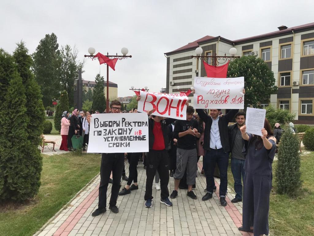 Asiyat Gereyeva ha raccontato che l’intero corpo studentesco della facoltà di storia si è riunito nell’ufficio del rettore il 17 maggio scorso, dove si sarebbe dovuta tenere una riunione del Consiglio accademico, con la partecipazione di Aslan Radzhabov. Volevano chiedere lumi sui licenziamenti degli insegnanti e sui ritardi nell’erogazione delle borse di studio. Il rettore pro-tempore non si è però presentato.