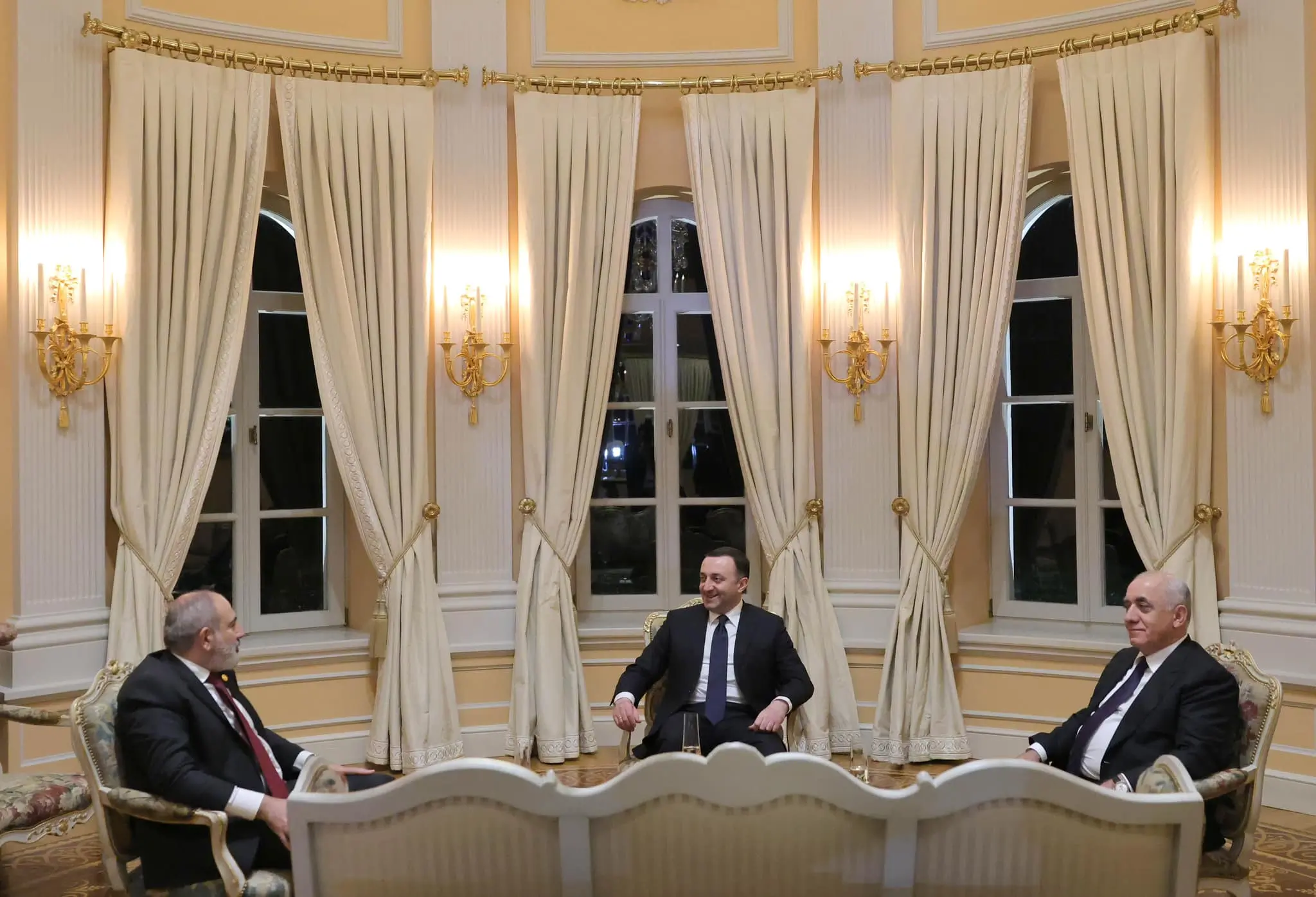 I tre primi ministri Asadov, Garibashvili e Pashinyan a colloquio - foto ufficiale dell'evento