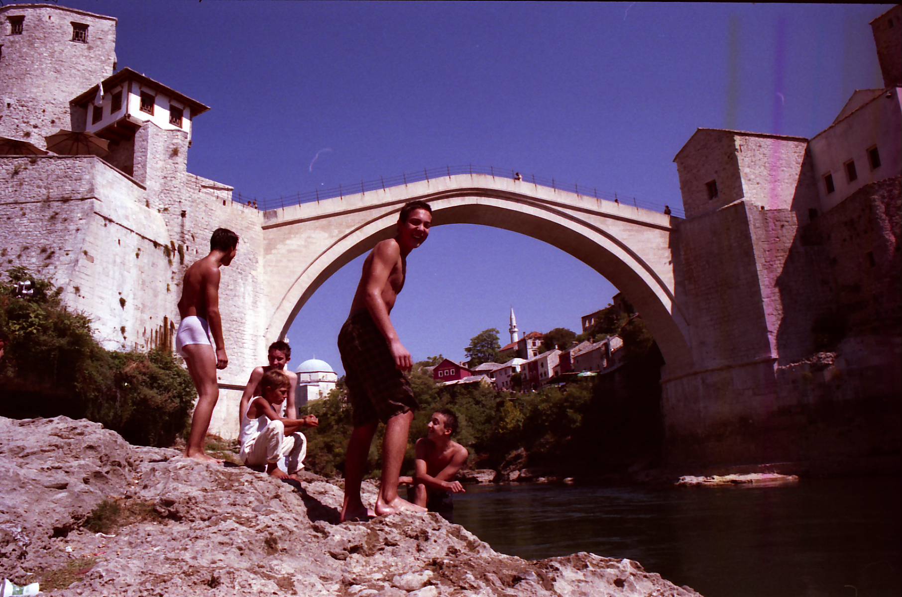 Tra i diversi eventi che animano la città durante l’anno, i tuffi tradizionali dal Ponte Vecchio si collocano nella tradizione più longeva, mantenuta anche durante l’epoca in cui il Vecchio era solo un ammasso di pietre e macerie riversate nel letto della Neretva e i tuffi si realizzavano dalla torre orientale Tara, dove oggi ha sede il museo della storia del ponte. Da questa torre si è tuffato per l’ultima volta nel 1996 anche Emir Balić, la leggenda mostarina del tuffo stile rondine e pluricampione; nella sua autobiografia Emir riporta un ricordo dell’infanzia legato ai tuffi che continuarono a tenersi anche e nonostante l’occupazione nazifascista di Mostar dal 1941 al 1945, uno tra i periodi più bui nella storia della città.