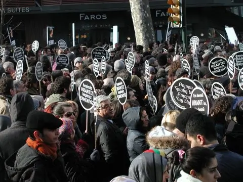 Migliaia di persone si sono riversate ieri nelle strade di Istanbul per ricordare Hrant Dink, giornalista turco-armeno, assassinato cinque anni fa e per protestare contro l’esito del processo ai suoi assassini, conclusosi con un solo ergastolo e l’esclusione del coinvolgimento di apparati dello Stato. Foto di Fazıla Mat