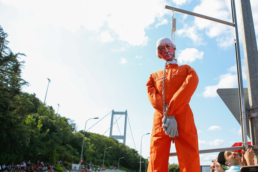 Un fantoccio raffigurante Fetullah Gülen viene impiccato durante manifestazioni di piazza ad Istanbul nel 2017 (@ deepspace/Shutterstock)