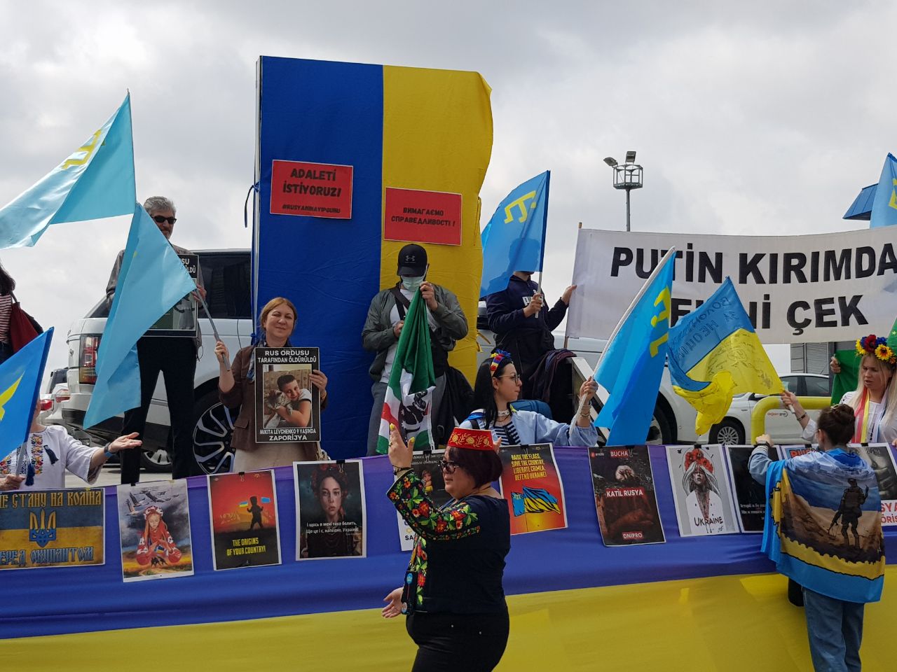 Con la propria ritualità, a poco più di un chilometro da San Pantaleone, la comunità ucraina esprime e urla invece il messaggio diametralmente opposto. Sulle scale di superficie del parcheggio coperto antistante la Camera di Industria di Istanbul, nel pressi del museo del Pera Hotel, quasi ogni giorno verso l’ora di pranzo ha luogo un presidio di condanna dell’invasione russa. Giovani donne e qualche ragazzo denunciano con parole e immagini i crimini commessi dall’esercito di Putin a Bucha o Mariupol, chiedono che le truppe si ritirino dal territorio del loro paese, reclamano la liberazione dei prigionieri dell’assedio di Azovstal.