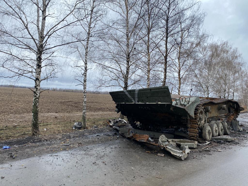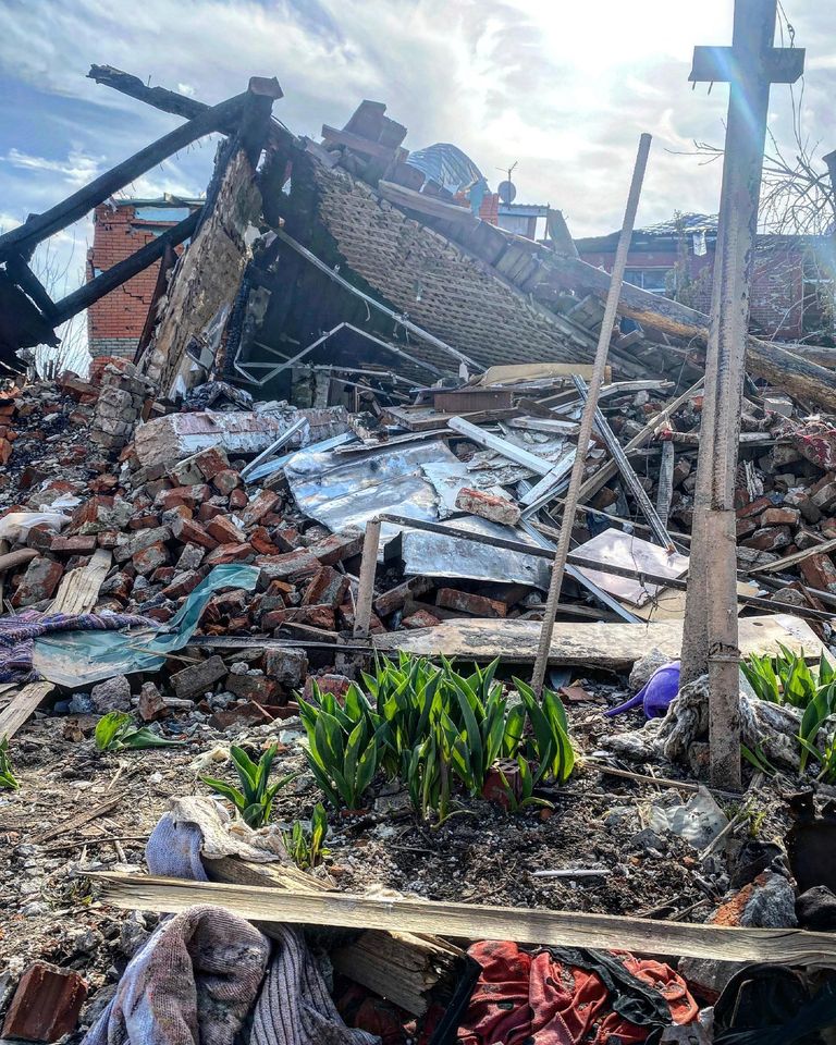 Case rase al suolo, macerie e carcasse di armi per le strade, superstiti attoniti che cercano i propri cari o seppelliscono i morti. Dopo due mesi di guerra, le istantanee dei villaggi dell’Oblast di Kyiv, di Chernihiv e di Sumy, liberati dall’occupazione russa nella prima metà di aprile. Foto di © Stefania Battistini, su gentile concessione