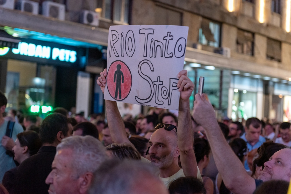 Belgrado, Serbia - Agosto 2024, cittadini protestano contro il progetto Rio Tinto © Dejan82/Shutterstock