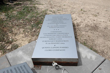 Amici e familiari hanno posto una stele nel luogo della strage dei tre pacifisti italiani Guido Puletti, Sergio Lana e Fabio Moreni, uccisi il 29 maggio di venti anni fa mentre portavano aiuti alla popolazione bosniaca