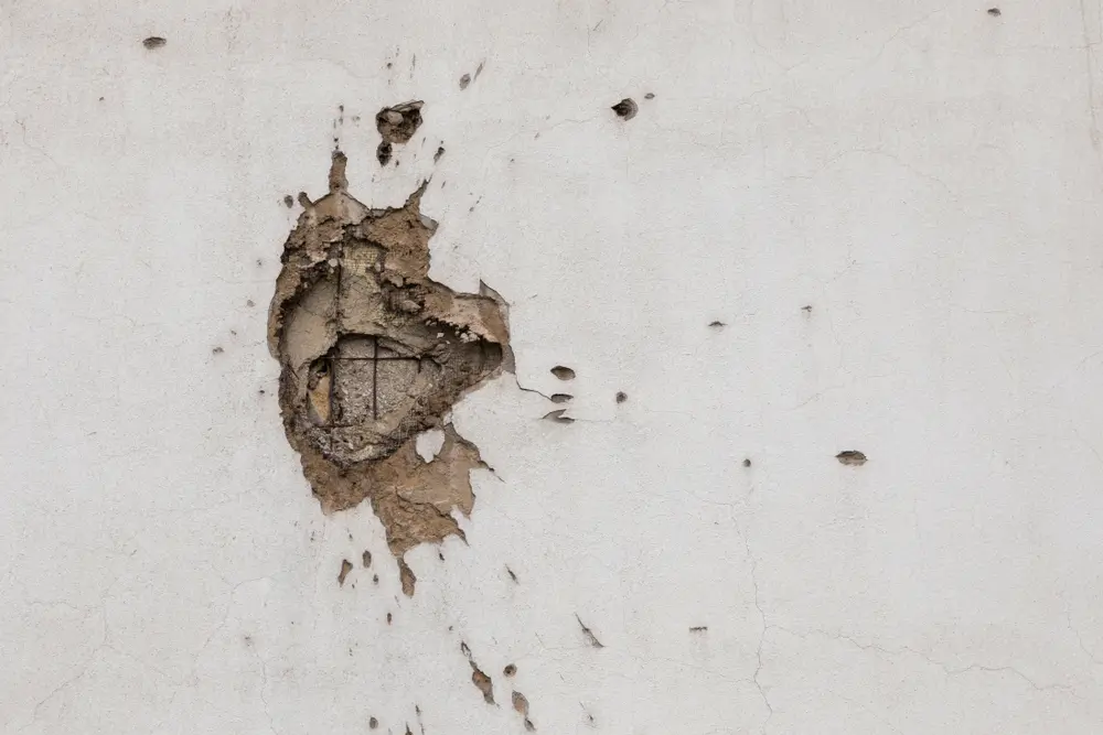 Il segno di una scheggia di mortaio su un muro di Sarajevo - © Fredy Thuerig/Shutterstock