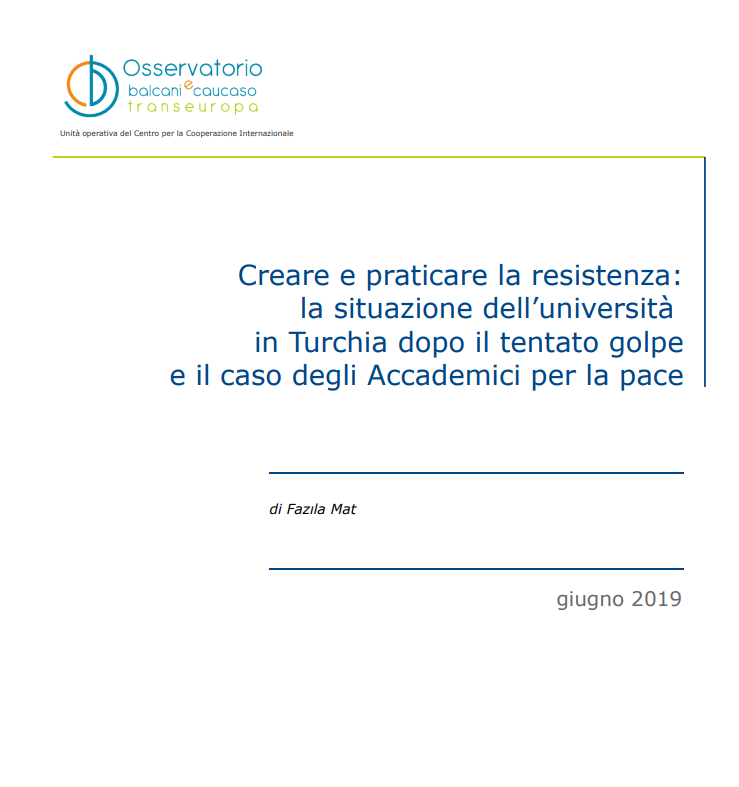 Negli ultimi anni la Turchia ha assistito ad una massiccia riduzione della libertà di espressione che ha avuto un notevole impatto anche sulla libertà accademica. Secondo le stime del network Scholars at Risk (SAR, 2018) tra il gennaio 2016 e il gennaio 2018, sono state licenziate 8.535 persone impiegate nelle università. Un caso particolare è rappresentato dagli “Accademici per la pace” (Barış İçin Akademisyenler-BAK), un gruppo di oltre 2000 universitari che sta scontando gravi conseguenze per aver sottoscritto una petizione a favore della pace. Il loro caso rappresenta anche un esempio di solidarietà collettiva che si traduce nell’ideare pratiche quotidiane per continuare la loro attività di ricerca e di condivisione della conoscenza.