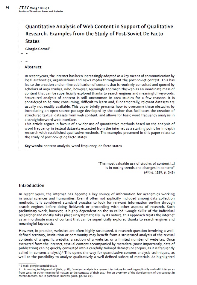 Quantitative Analysis of Web Content in Support of Qualitative Research. Examples from the Study of Post-Soviet De Facto States
