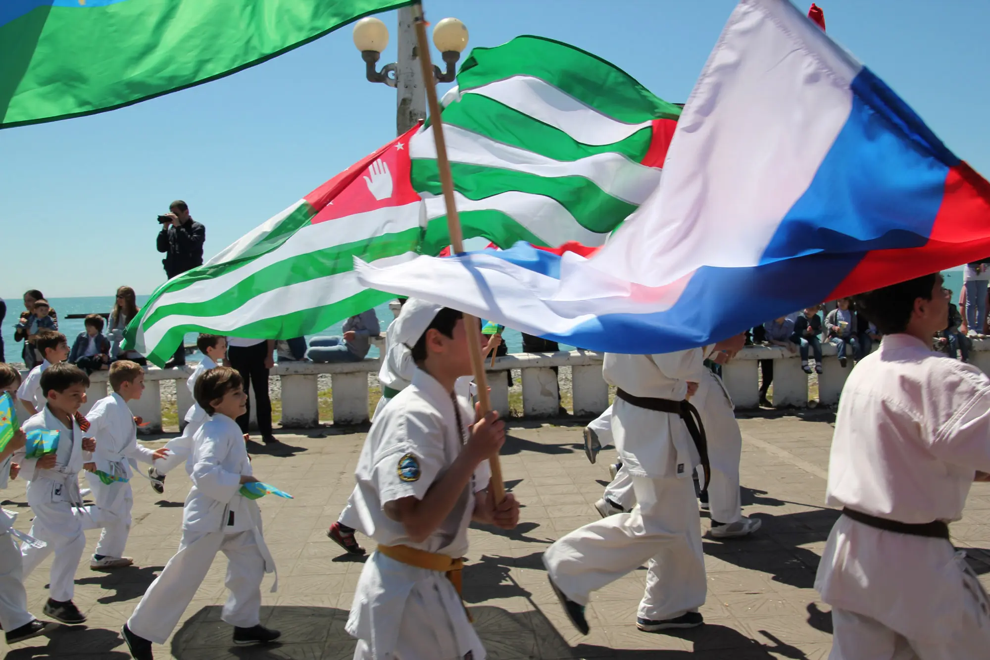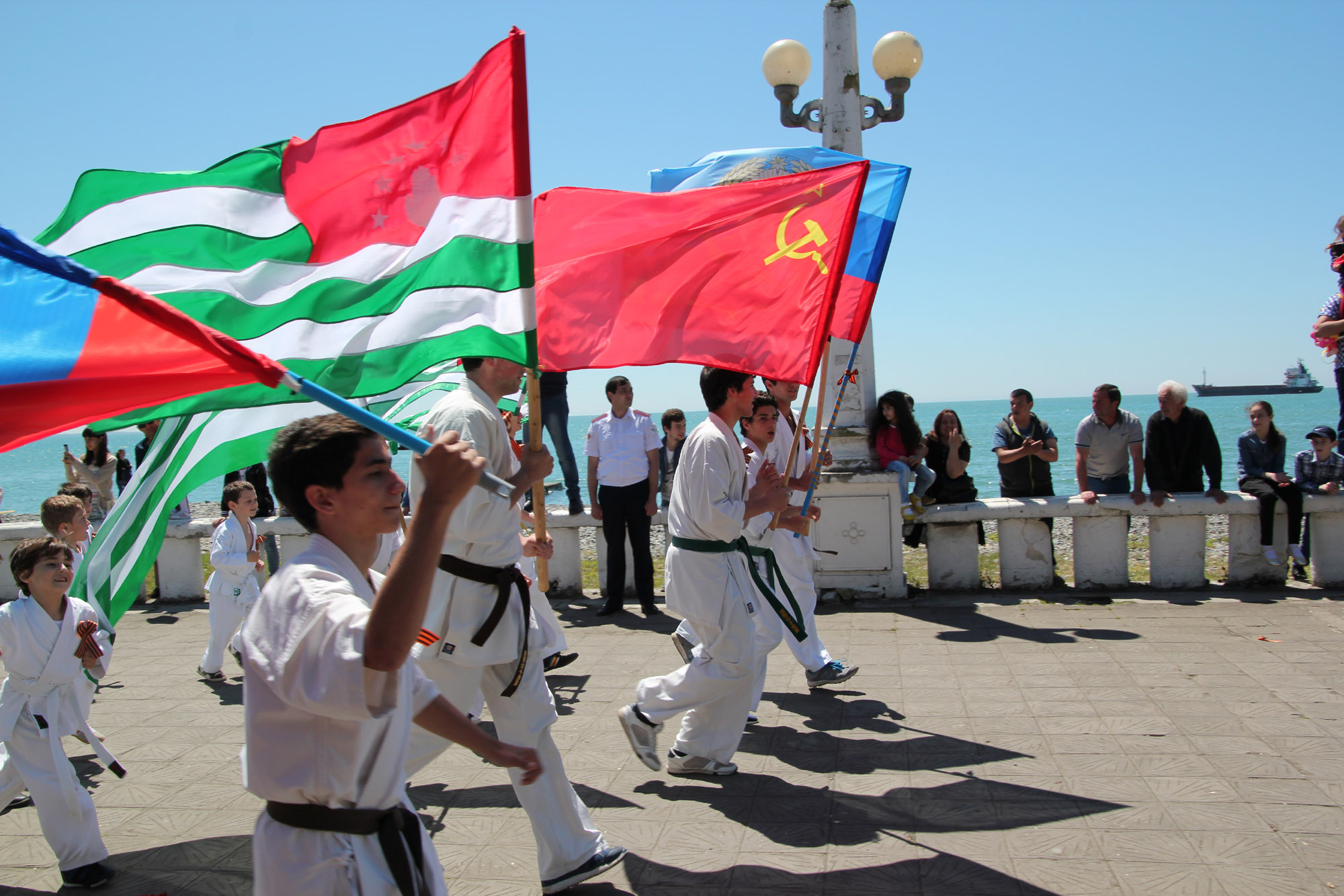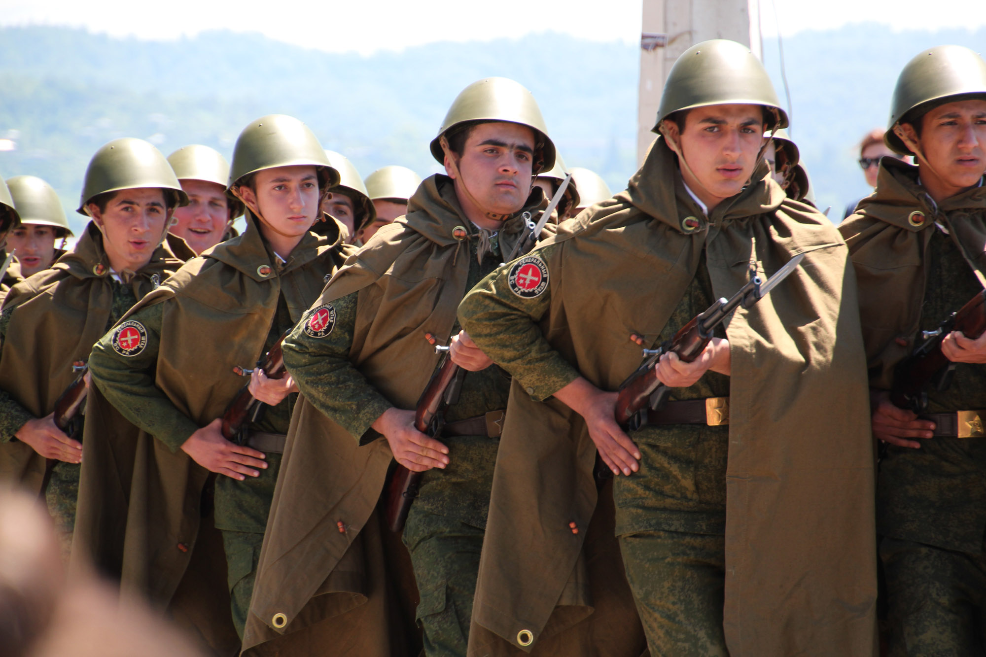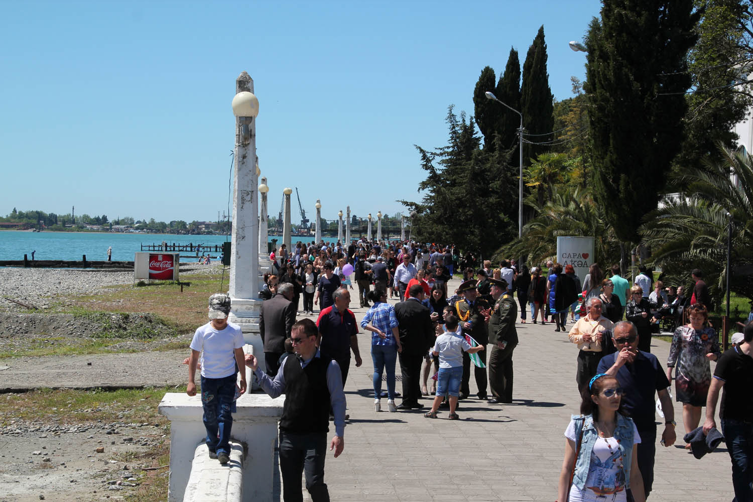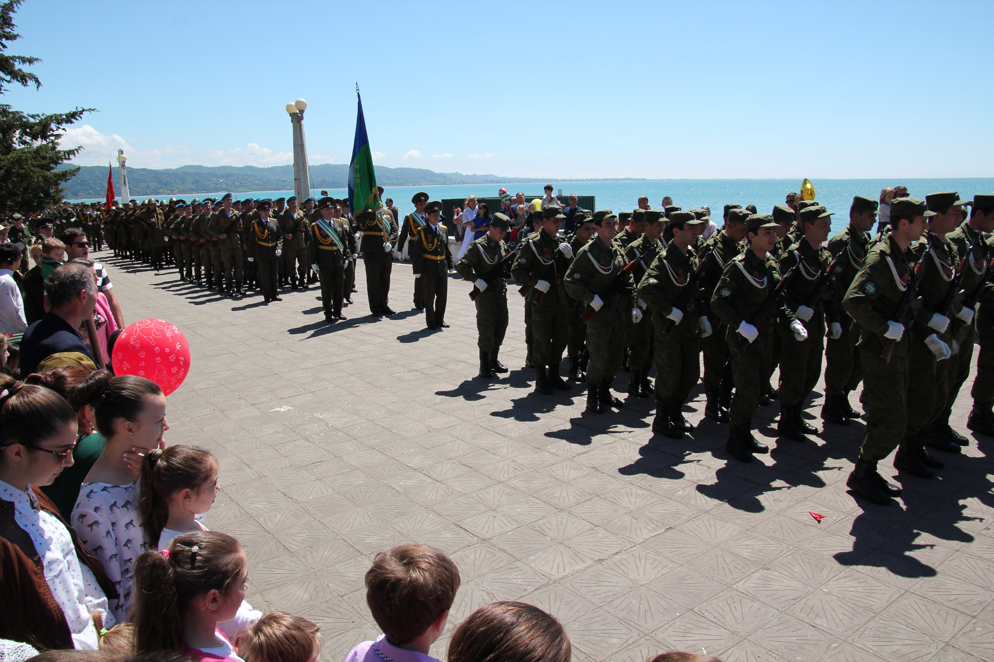 On the seafront of Sukhumi, Abkhazia, Russian and Abkhazian soldiers paraded together. Photos by Giorgio Comai