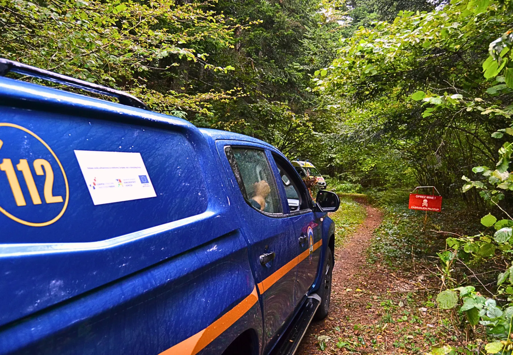 A Civil Protection vehicle near the demining woods near Otočac, Croatia, September 2025 - photo by Silvia Maraone