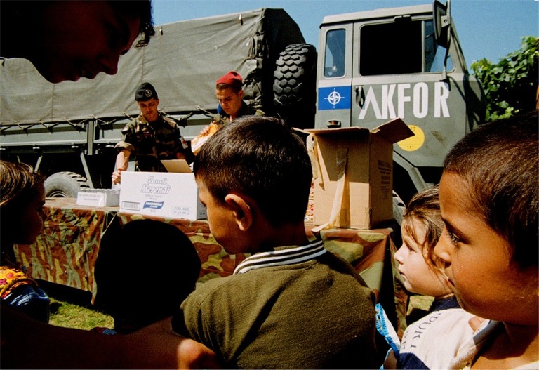 In the summer of 2002, photographer Giuliano Matteucci used colour photography to explore the feelings of children in Kosovo. The photos reveal the children’s curiosity and ability to live everyday life intensely. These pictures were exhibited in Rome, Palmanova, and Cortona at meetings promoted by the Italian Red Cross.