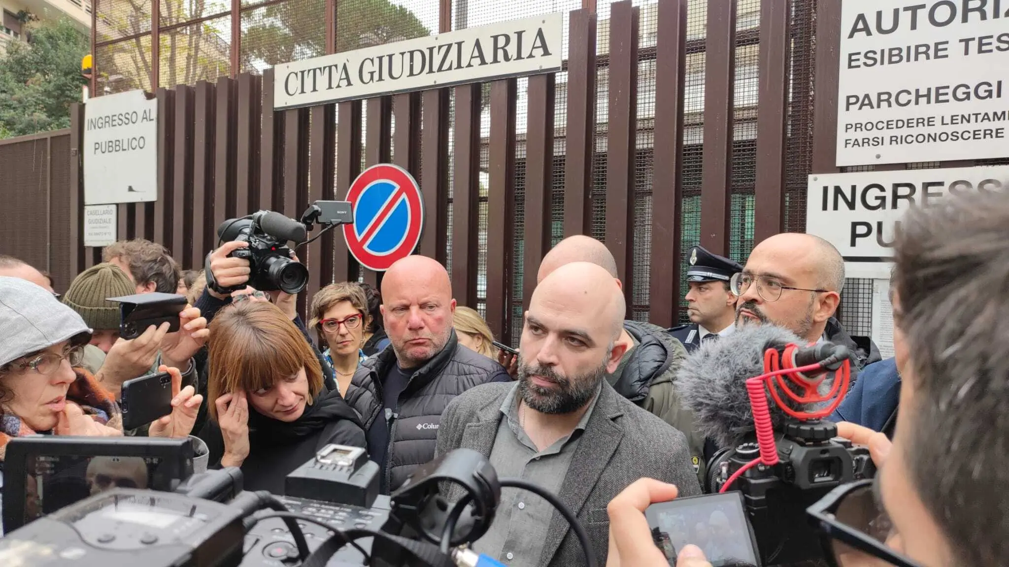 Roberto Saviano yesterday outside the courtroom where the first hearing in the trial involving him accused of defamation was held - photo by Maria Francesca Rita