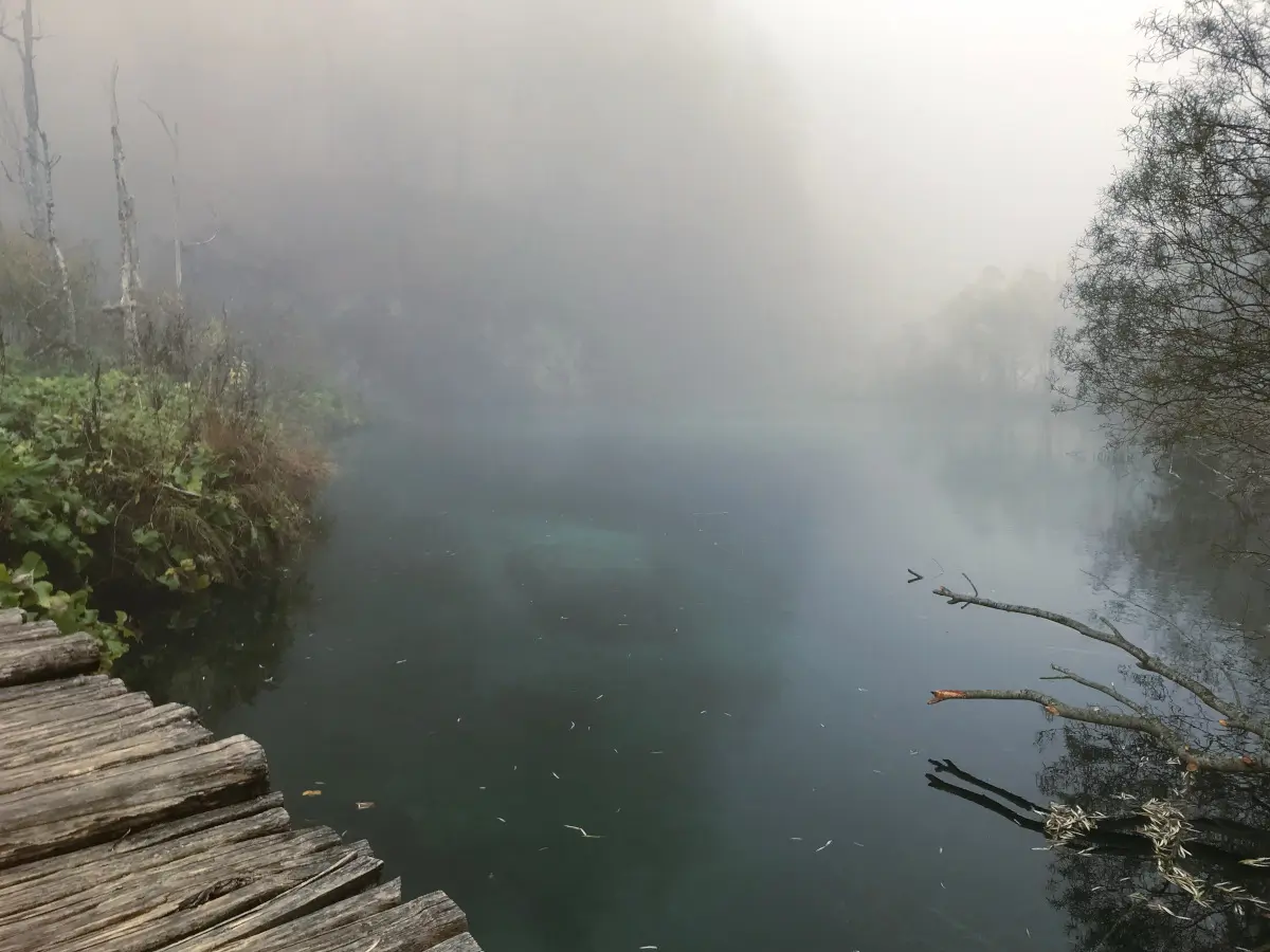 The Plitvice Lakes Natural Park looks very different than when it was visited by thousands of tourists in the summer. The fog is one with the dense silence of the water flowing along the streams and the roar of the ubiquitous waterfalls.