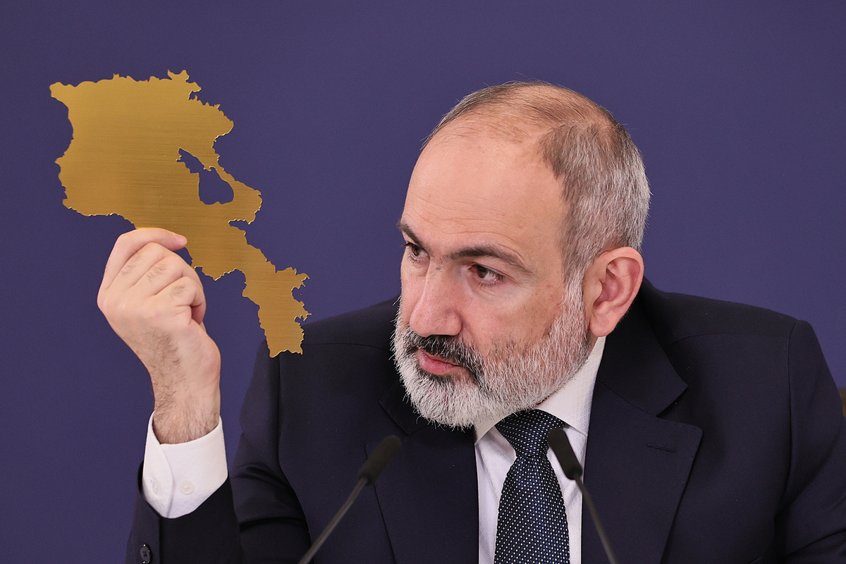 Holding aloft a golden cutout map of the Republic of Armenia, minus any representation of the now depopulated and dissolved Karabakh, Pashinyan set out to convince the population that territorial claims outside the country’s internationally recognised borders were now a thing of the past.