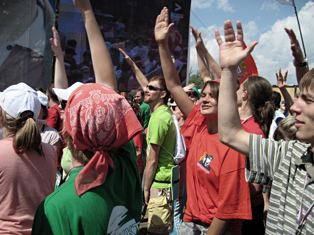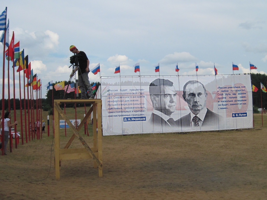 July 2010. Thousands of young people from dozens of countries were involved in a summer camp organised by the Russian government. They took part in lectures, conferences and debates as well as social and recreative events. They spent a week together beside a beautiful lake, a vast pine wood and huge portraits of Vladimir Putin and Dmitri Medvedev