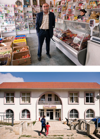 Slavik Hayrapetyan stand in his store. Until 1988 in Baku he used to be a construction site manager. He managed to escape to Yerevan by plane with his wife and took part in the war where he lost his arm because of the impact of a Grad missile. After the liberation he obtained a house in Shushi where he opened his first small shop and after some years with a careful administration he managed to open a second and bigger one.