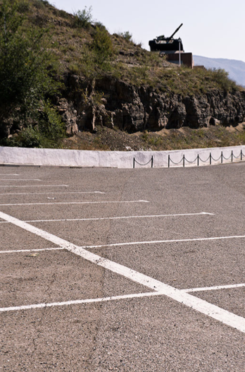 A T-72 tank used by Karabakh soldiers to liberate Shushi/Shusha stand over the empty parking which is used every 8th May when celebrating the liberation day of the city.