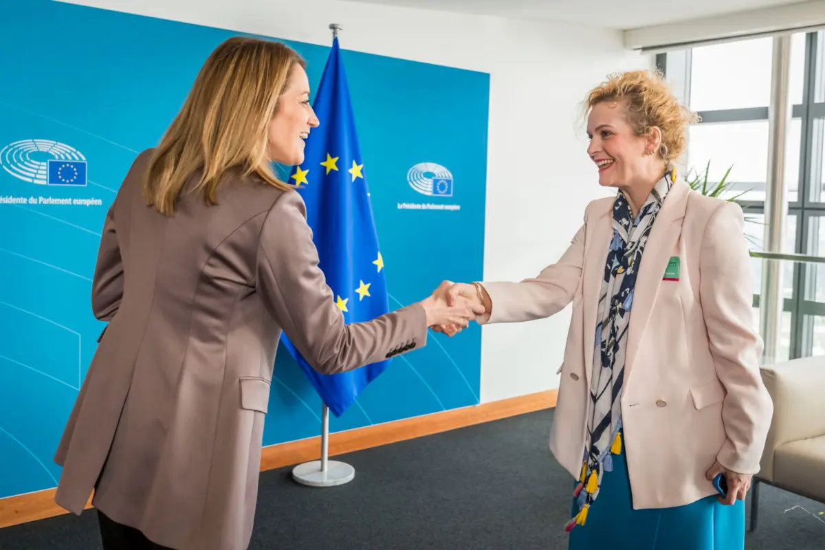 CASE Steering Committee member Flutura Kusari thanked President of the EP Roberta Metsola on behalf of the CASE Coalition © CASE