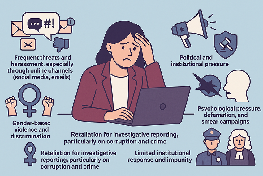 Women in journalism – especially in investigative reporting – face pressure, threats, verbal and physical assaults, insults and exhausting legal battles aimed at silencing and intimidating critical voices.